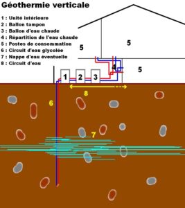 La présence éventuelle d’une nappe phréatique améliore le rendement de la pompe à chaleur, à condition que le débit soit suffisant. Si ce n’est pas le cas, du gel peut apparaître autour du conduit, et mettre en panne l’installation.
